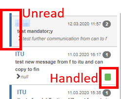 visualizes it in the correspondence list on Communication view (instead of  used for Table view). The "Handled" indicator can be removed after selecting "Remove Handled" from the options displayed when the top right button (