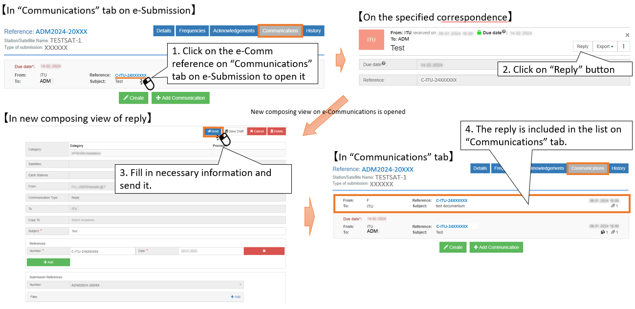 2) Correspondence on e-Communications can include links to other correspondence on e-Communications and a submission reference of a submitted to the BR notice in e-Submission. Additional files can be attached to the included submission reference number.