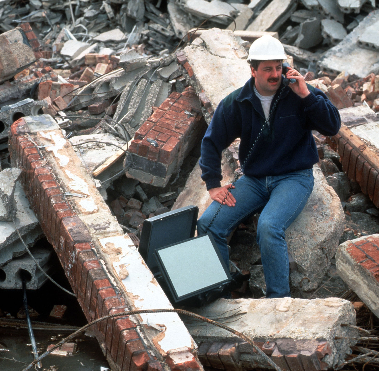 |  Использование оборудования спутниковой телефонной связи после стихийного бедствия. Источник: INMARSAT. |